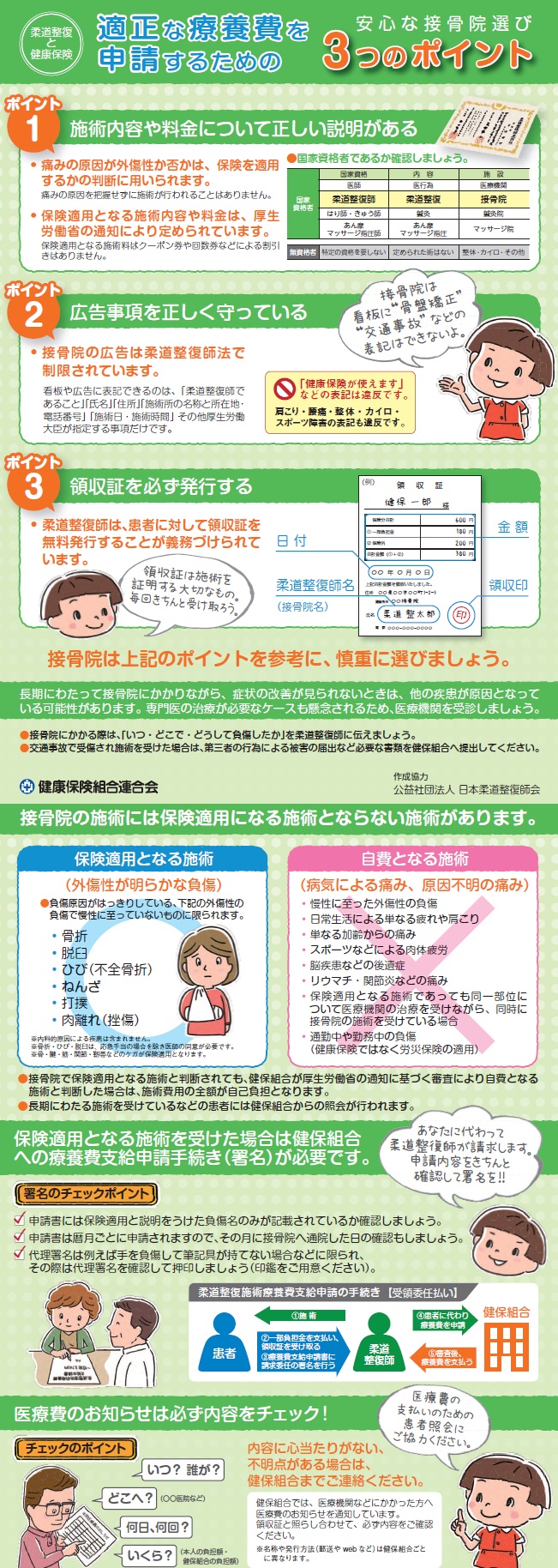 適正な療養費を申請するための、安心な接骨院選び3つのポイントについてお知らせします。