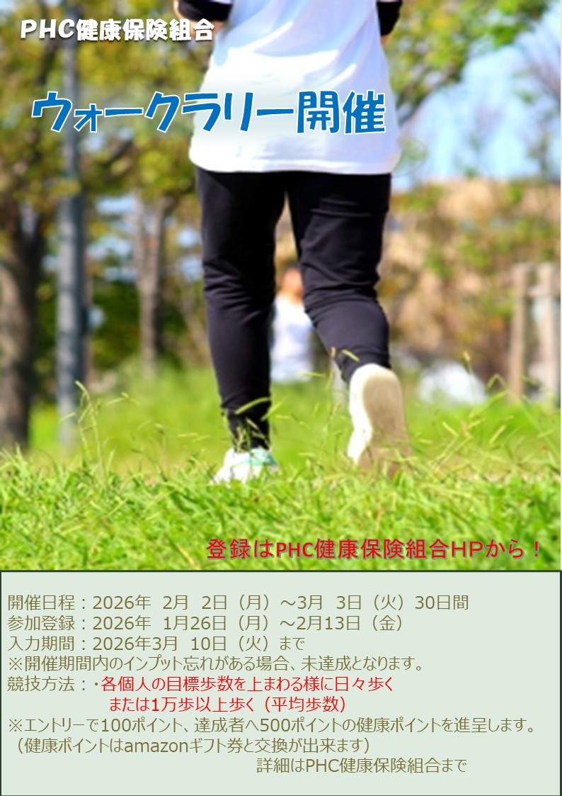 PHC健康保険組合では、下記のとおりウォークラリーを開催いたします。